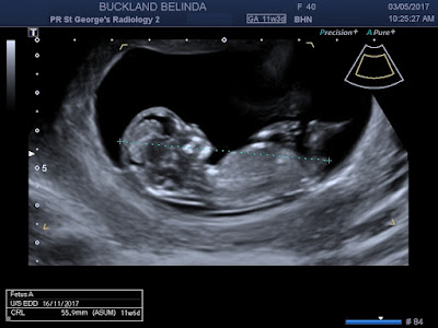 Officially 11 weeks 3 days, but I thought it would be more like 11 w 5 days. Baby is measuring 11 w 6 days. So doing well.
